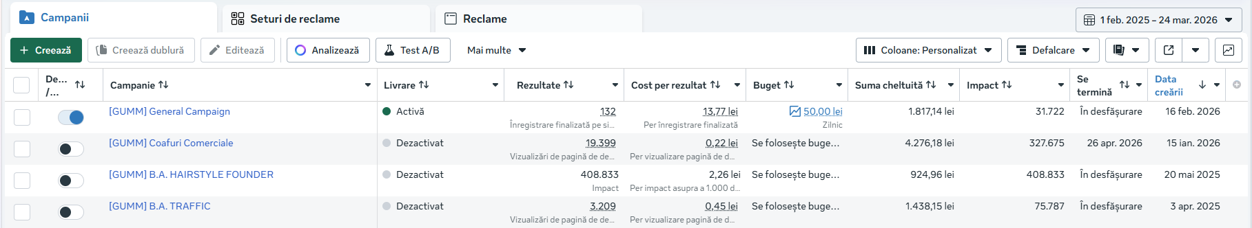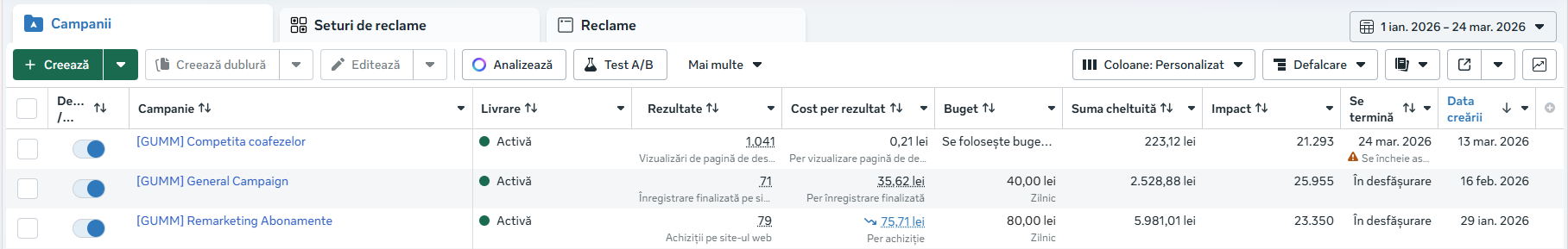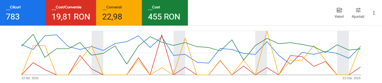 achiziții la mai puțin de 75,30 lei per achiziție în Feb. – Mar. 2026