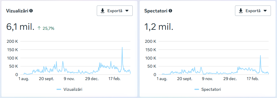 vizualizări de conținut (+100%)