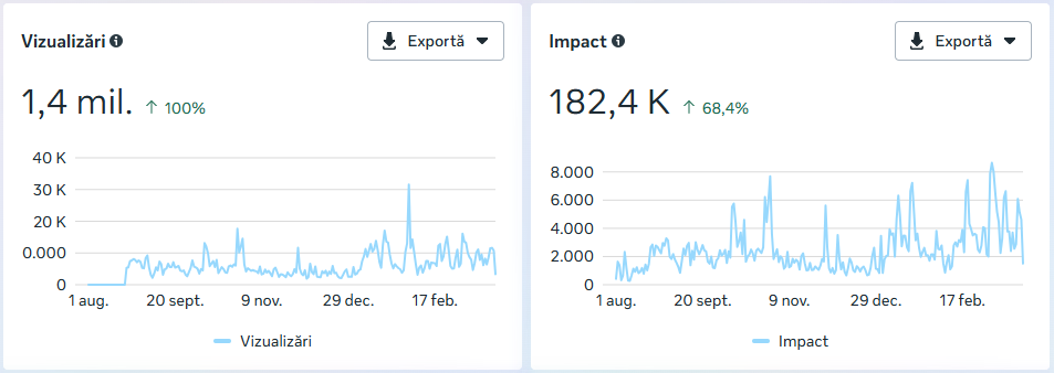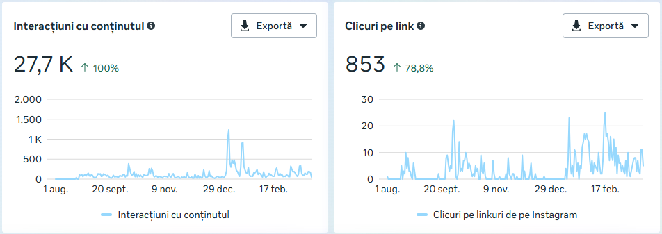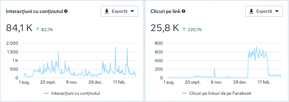 interacțiuni cu conținutul (+82% față de perioada anterioară)