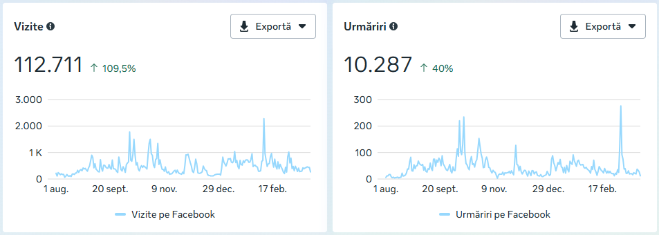 vizite pe pagina de Facebook (+109%)